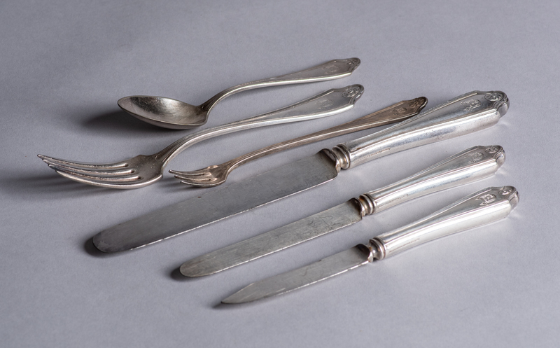 Stamped on back of handles: "Community Silver" and "Plate" (in lozenge);" Shop mark with "Als ik Kan" impressed on handle tops