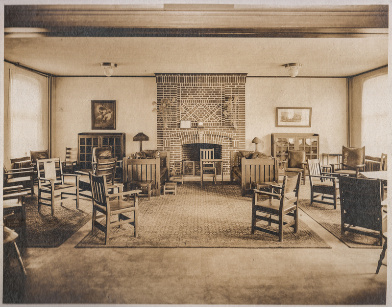 Lobby or Reception Room of the Germantown YWCA which was furnished in Stickley Furniture about 1918.