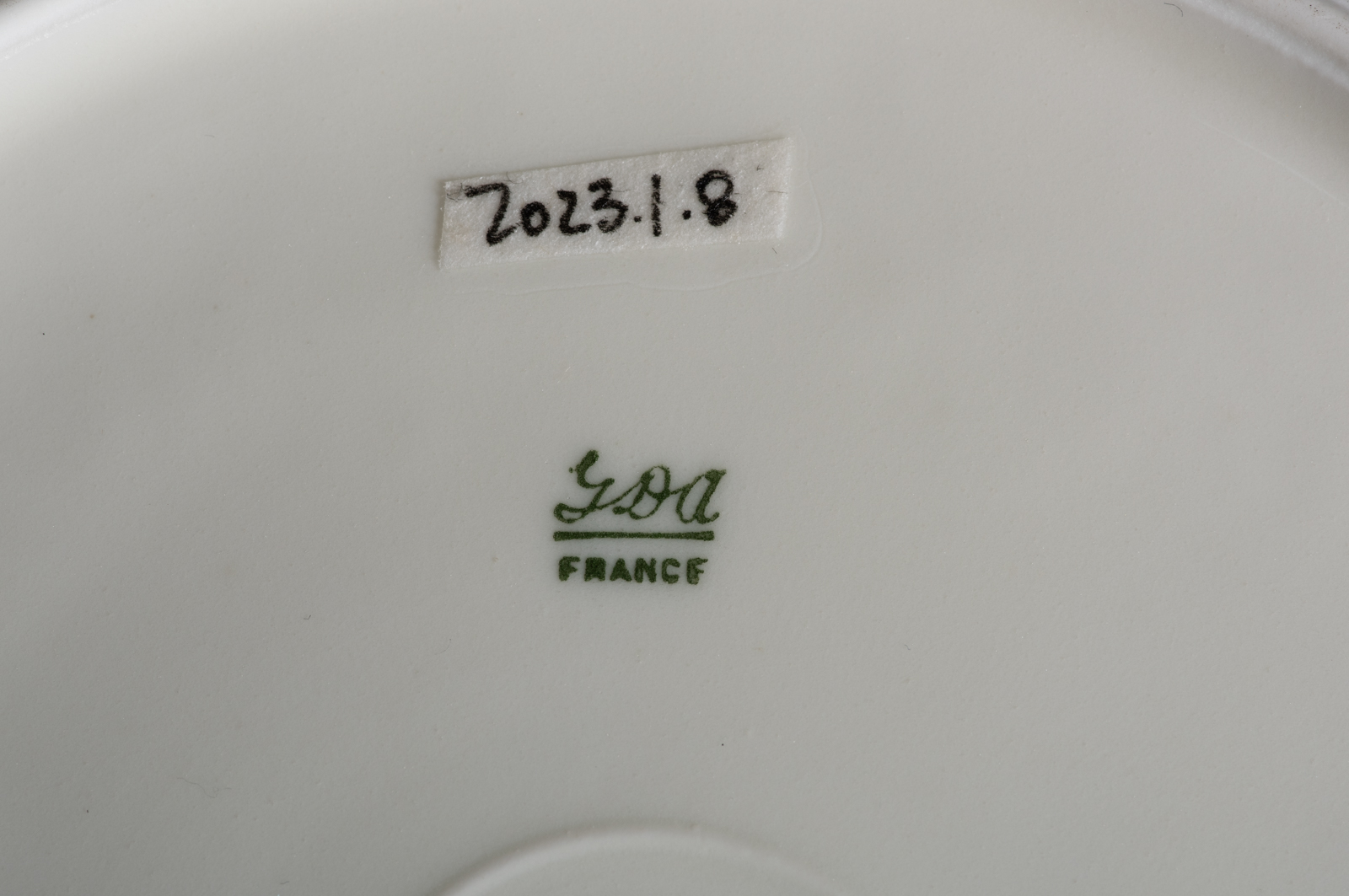 Stamped on back in green: "GDA" (in script, underlined) over "FRANCE."