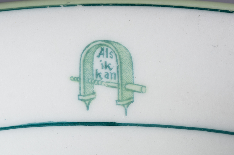 The smaller of two large bowls made for the Tea Room at Stickley's 1903 Arts and Crafts exhibition, the purpose of this bowl is not immediately clear. Unlike the larger one–which features the Als ik Kan logo on the outside and may have served as a punch bowl–the shorter height of this bowl, lack of relief decoration, and the placement of the logo on the inner rim make it less of a display piece and more a part of a larger ensemble for a sideboard or the tables.