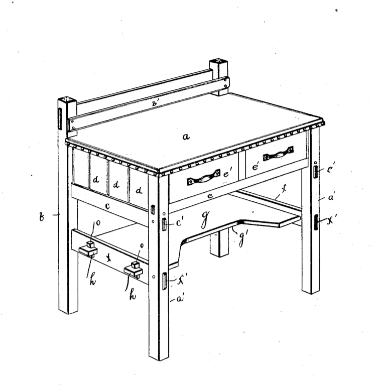 Notes: The desk that is illustrated above was granted a patent on September 3, 1901. See: Design Patent No. 35,044.