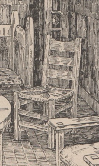 In the inaugural issue of The Craftsman, Stickley’s new aesthetic direction was made clear: “The form of any object is made to express the structural idea directly, frankly, often almost with baldness.” Gone are the pierced splats and ball and claw feet of the Chippendale style, or the folksy historicism of the many Windsor chair models he had earlier produced. Instead, the form is more direct, the lines rectilinear, and the decorative interest stems mainly from the finish of the wood, the choice of seating materials, and the proportion and placement of the various components. If the shallow scoop in the crest rail provides the only real relief from the form’s austerity, it is the thin proportions of the front and side stretchers that help to lighten the form and create visual interest by their positioning.