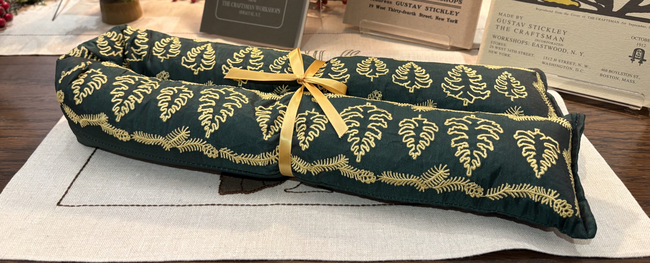 These high-quality, balsam fir draft stops are the perfect addition to any home. The delicate embroidery pairs nicely with the wonderful fir scent that will fill your house for the holidays!