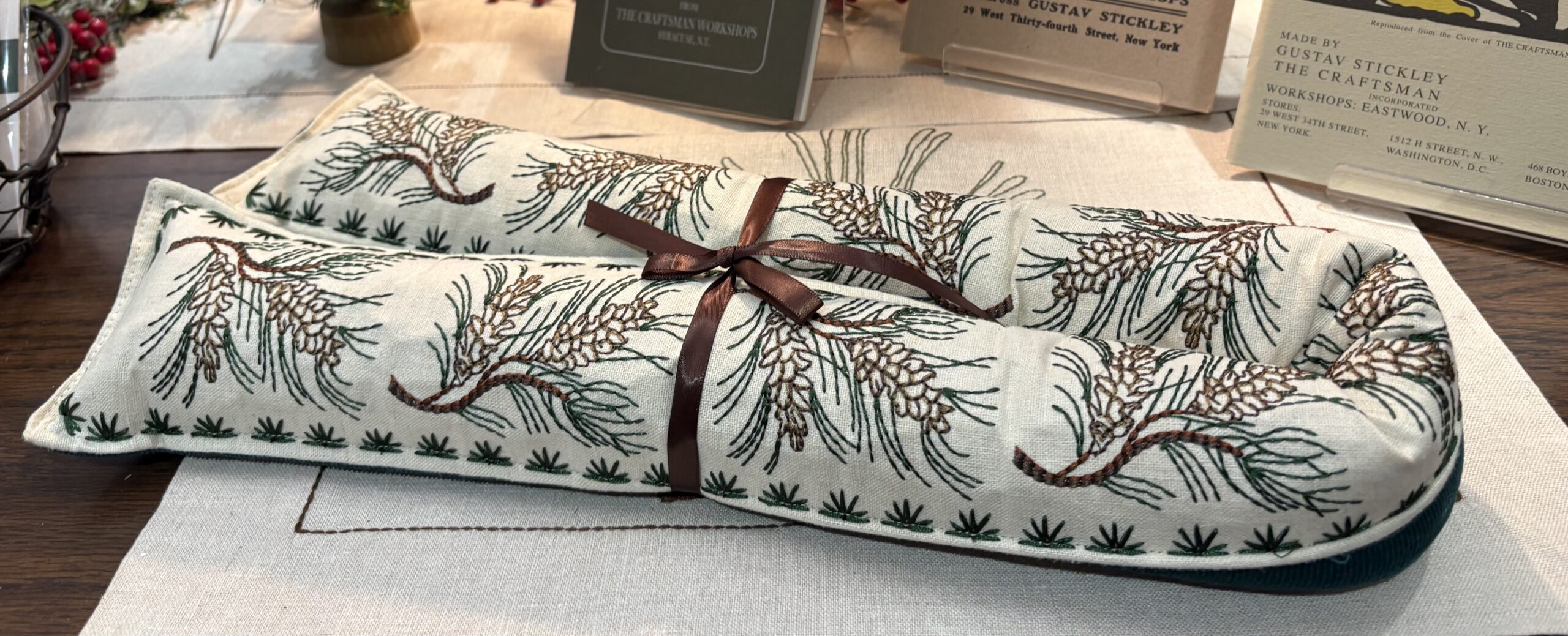 These high-quality, balsam fir draft stops are the perfect addition to any home. The delicate embroidery pairs nicely with the wonderful fir scent that will fill your house for the holidays!