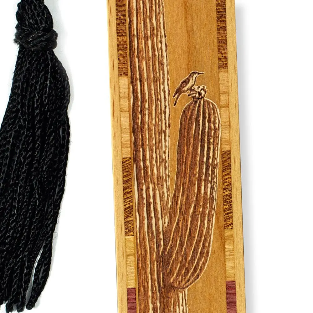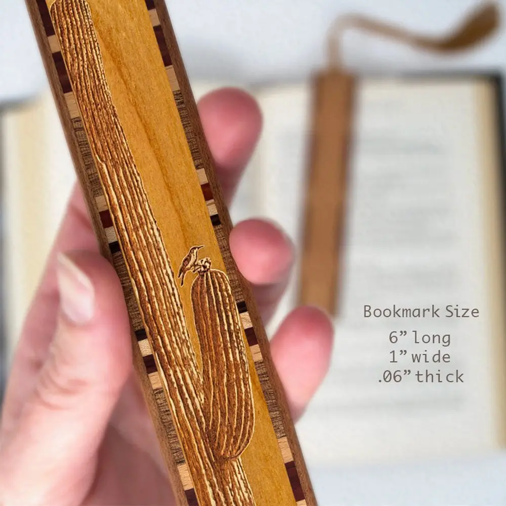 Cactus with Bird Engraved Wooden Bookmark