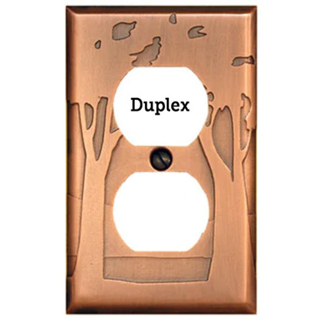 The pattern for these handmade light switches/outlet covers is etched by the artist into a solid copper switch plate. Once the design is finalized the product is protected and finished with two coats of lacquer.