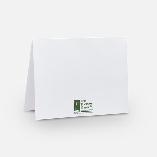 These (6) blank greeting cards feature a lovely winter scene of the Log House at Craftsman Farms created by artist Anna Szalc. These cards capture how the Log House may have looked one winter day when the Stickley Family lived here. Red satin bows hang from the wreaths that adorn the windows and the evergreen garland that drapes on the stone in front of the Log House. The fireplaces warm the house and smoke spills from the chimneys. The windows are aglow. A sled leans against the house and footprints lead up the hill and into the house. The day is still as the deer watches from a distance and the cardinals play in the tree.