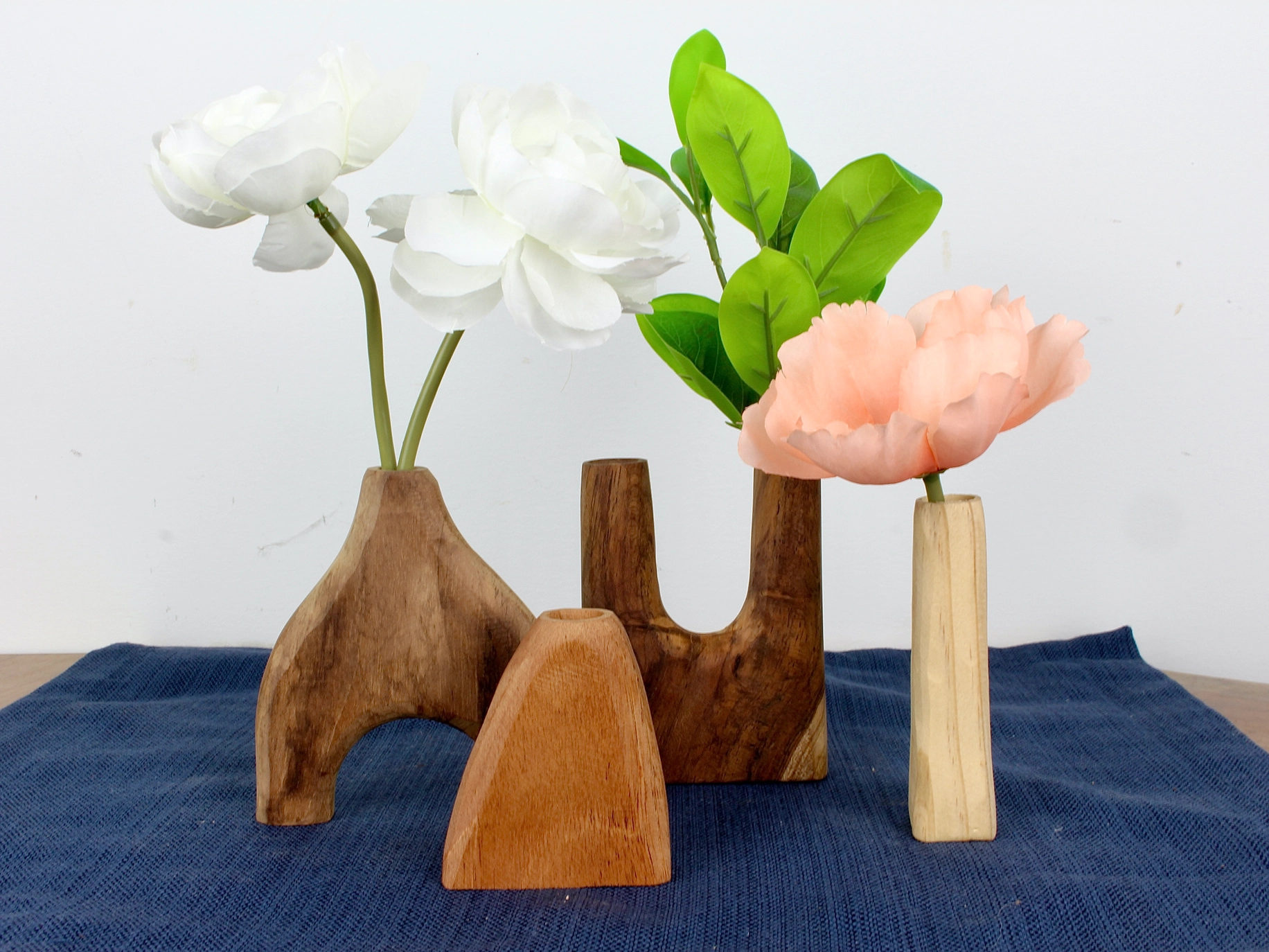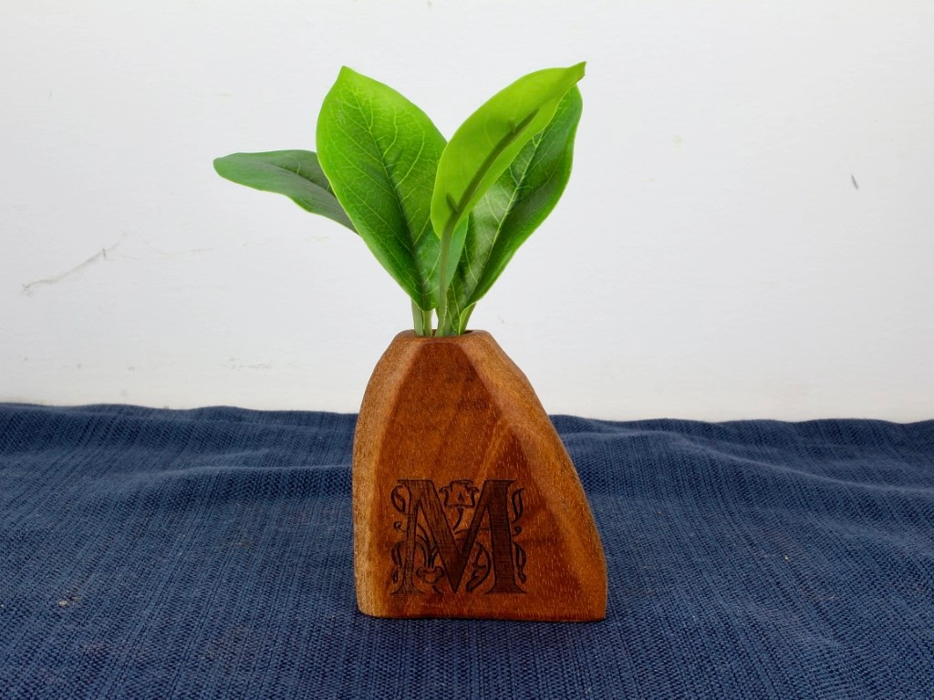 These hand carved wooden vases come in a set of 4 unique shapes, each carved from a different wood and make a great gift or addition to home office space, desktop, small shelves, or tabletops. When purchased as a set, they come packed in a nice green box with crinkle paper as shown. They can also be purchased individually, without the box and packing material.