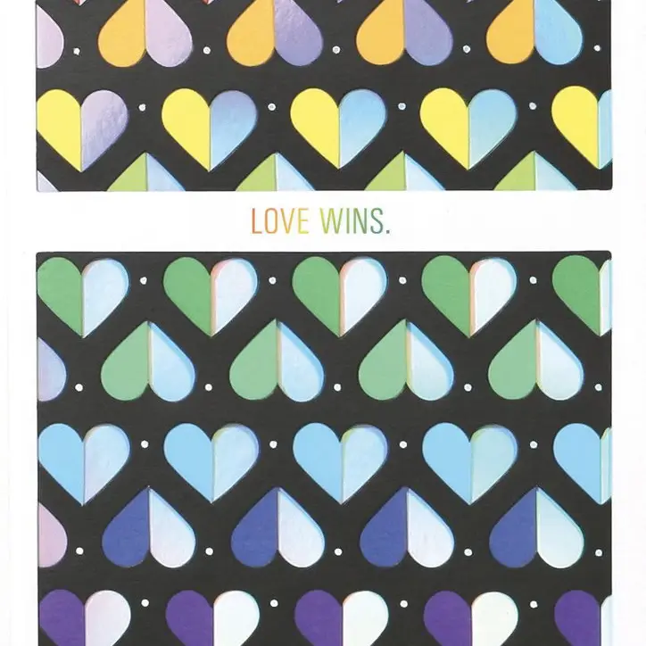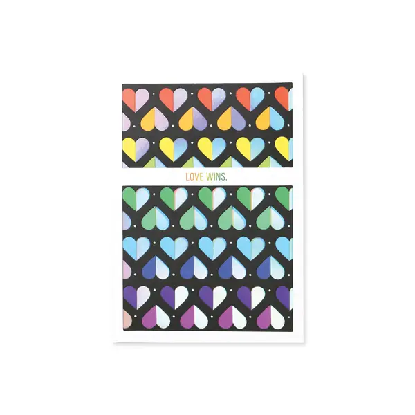 Iridescent foil. Rainbow gradients. Clean graphics. All love deserves to be bold and perfectly unapologetic. Send this gleaming card to commemorate a union or simply to pass along a sweet note in this paper-engineered, die-cut greeting card. Great for Valentine’s Day