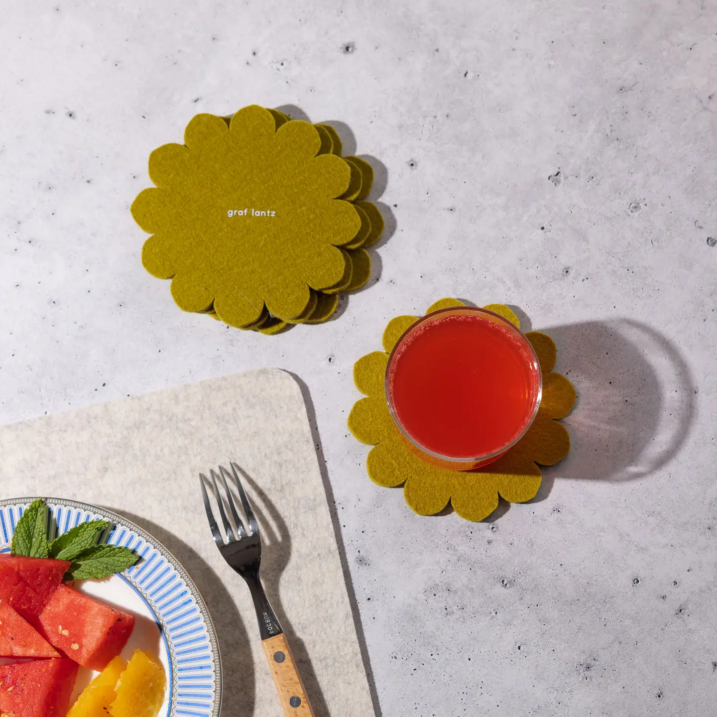 Each beautiful coaster has a small logo on the underside as Graf Lantz’s mark of quality. They are made using OEKO-TEX® dyes, to make sure they are non-toxic and free of harmful chemicals.