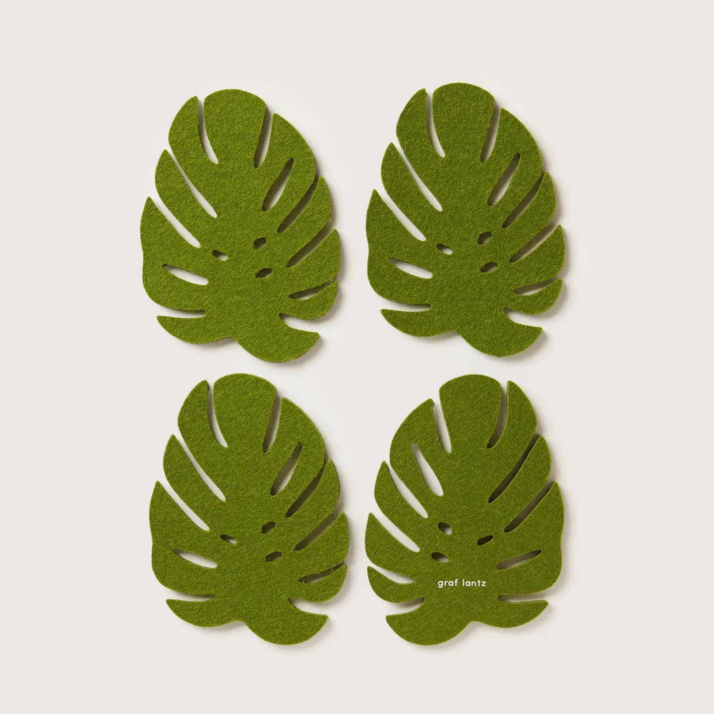 Merino Wool Felt – Monstera Coaster Pack (Set of 4)
