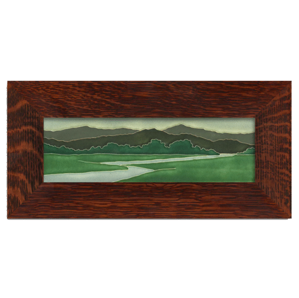 The tile can be Framed or Unframed in a Dard Hunter Studios Oak Park frame made of quartersawn oak. Dard Hunter Studios was founded by early Roycrofter Dard Hunter and is currently run by his grandson, Dard Hunter III. The grain pattern of each framed tile varies.
