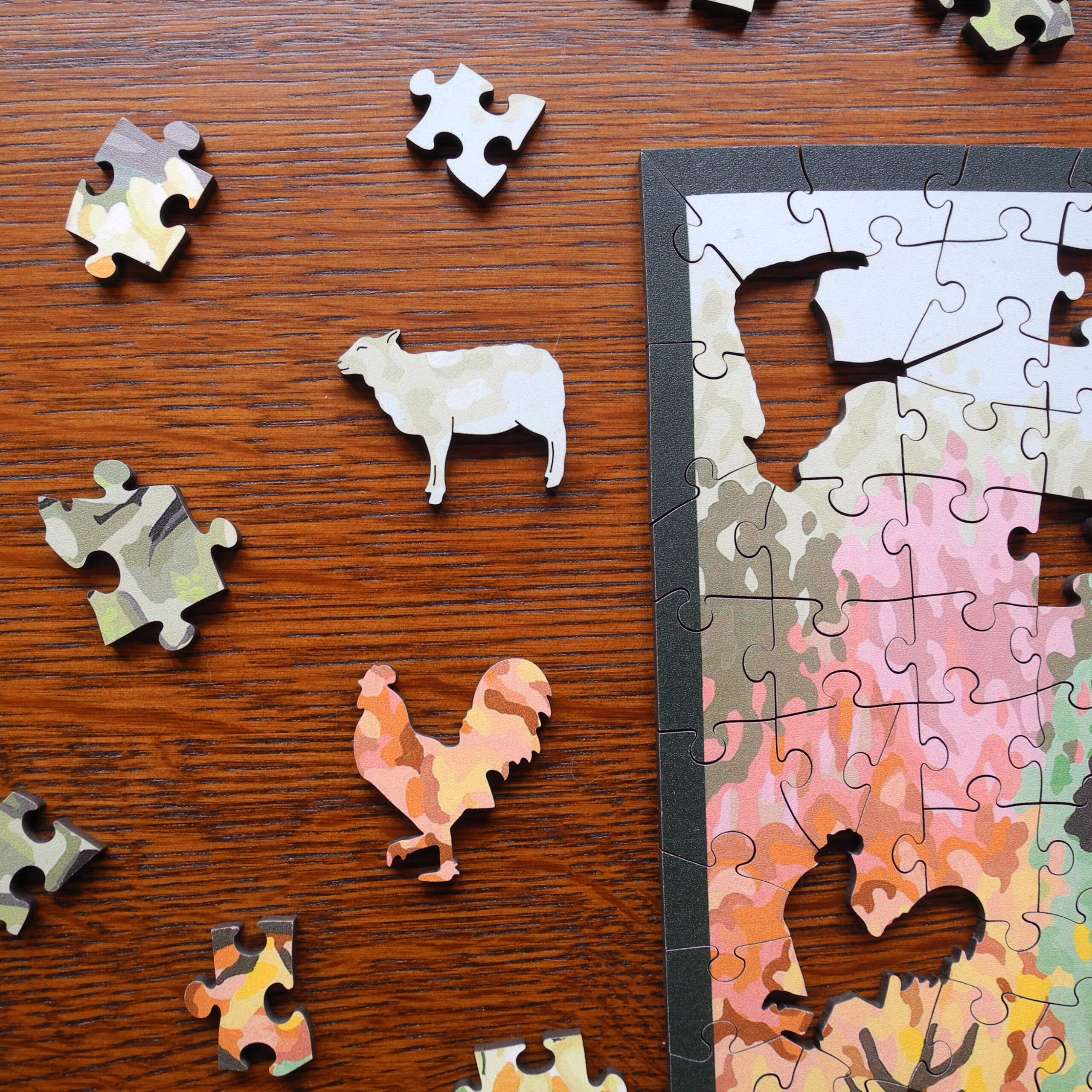 This puzzle bundle is the perfect gift for the puzzle lover in your life! Includes puzzle, quartersawn oak frame with glass, a paint brush, matte modge podge and instructions so that you can frame your puzzle when it is complete.